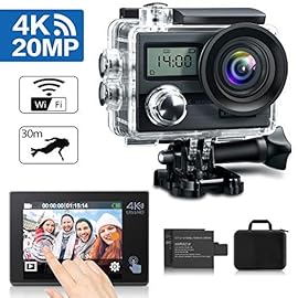 KAMTRON Action Cam 4K Wasserdicht Aktion Kamera – 20MP Ultra Full HD WiFi Unterwasserkamera Helmkamera mit EIS 170°Weitwinkelobjektiv 2″-LCD-Touchscreen 2 wiederaufladbare Batterien