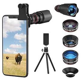 Handy Objektiv Kamera Linse Kit, 4 in 1 Universal 22X Zoom Teleobjektiv + 0,62X Weitwinkel + 25X Makro + 235° Fisheye mit Stativ für IOS und meisten Android Smartphone
