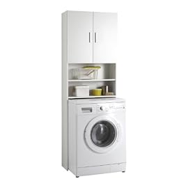 FMD Möbel L913-001 Olbia 2.0 Waschmaschinen,Trockner, WC-Überbau, Hauswirtschaftsschrank, Schrank mit Zwei Türen, Holz, Weiß, 64 x 26 x 190 cm