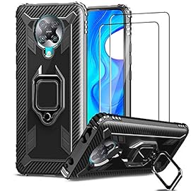 IMBZBK Kompatibel mit Xiaomi Poco F2 Pro Hülle + [2 Stück] Xiaomi Poco F2 Pro Panzerglas Schutzfolie, [360 Grad Drehung Fingerring Ständer] [Anti-Fall] Silikon weiches TPU-Gehäuse