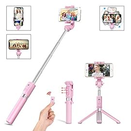 LATEC Bluetooth Selfie Stick Stativ, 3 in 1 Erweiterbar Monopod Wireless Selfie-Stange Stab 360°Rotation mit Bluetooth-Fernauslöse für iPhone XS/XR/X/8 Plus/8/Samsung Galaxy bis 3, 5-6 Zoll Telefone