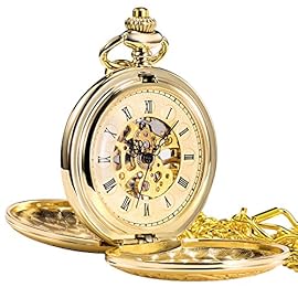 TREEWETO Unisex Taschenuhr mit Kette Analog Handaufzug Doppelscharnier Römische Ziffern Gold/Silber