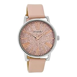 Oozoo Mädchen-/Damenuhr mit Lederband 38 MM Glitzer/Pinkgrau JR302