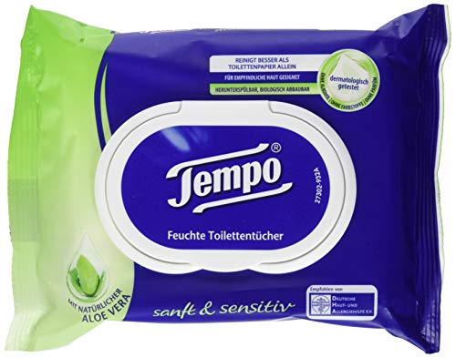 Tempo sanft und sensitiv feuchte Toilettentücher (mit natürlicher Aloe Vera) 4 x 42 Tücher (168 Tücher)