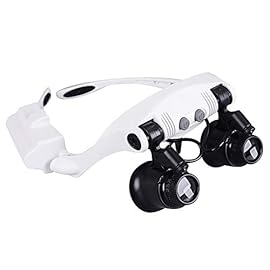 Uhrenreparatur-Lupenbrille, Optische Linse aus Kunststoff-Acryl, 2 LED-Lichter, Vergrößerung 10x / 15x / 20x / 25x, für Uhrmacher, antike Wertschätzung, Produktion von integrierten Schaltkreisen