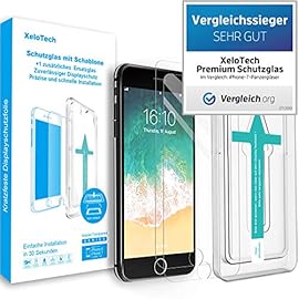 XeloTech Premium Panzerglas kompatibel mit iPhone 8/7 (2 Stück) mit Schablone für hohe Passgenauigkeit – Unterstützt 3D Touch