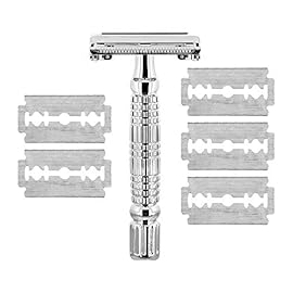 TROP Nassrasierer mit Chrome-Finish, inkl. Etui 4 Ersatzklingen – Rasier-Hobel/Männer-Rasierer/Herren-Rasierer