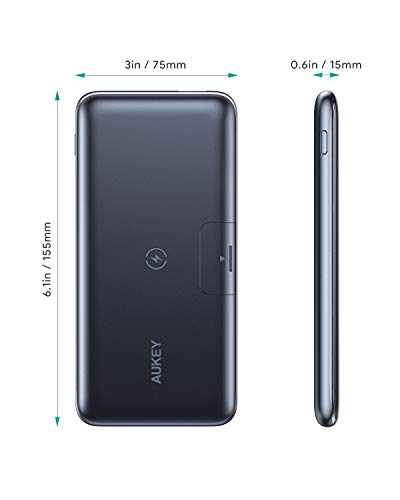 AUKEY Tragbares Ladegerät, 10.000 mAh, kabelloses Ladegerät mit faltbarem Ständer, tragbar, mit PD 3.0, Quick Charge 3.0, externer Akku, 18 W USB-C, für iPhone 12/12 Pro&More