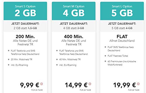 Bsp. Smart XXL 12 GB Allnet Flat – 120 min. tr mobil – 24,99€