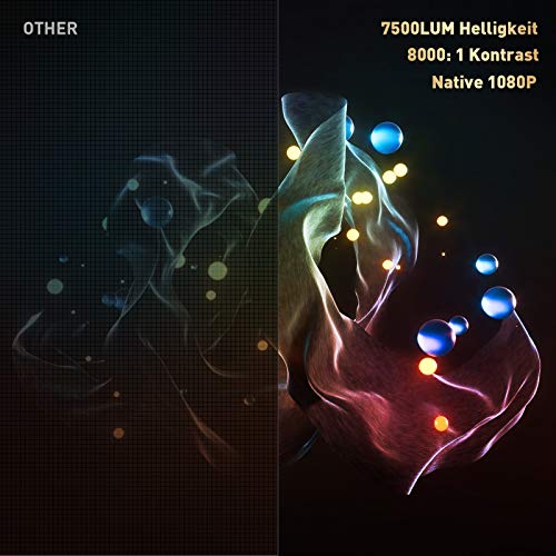 【Native Auflösung in Full HD (1920 * 1080) und 7500 Lux】 Der Beamer verfügt über eine native native Auflösung von 1920 * 1080, ein bemerkenswertes helles und hohes dynamisches Kontrastverhältnis von 7500 Lumen von 8000: 1 und liefert scharfe und detaillierte Bilder von HD-Inhalten ohne Downscaling oder Komprimierung, die viermal höher als 720p ist. Kombinieren Sie eine innovative 5-Lagen-Glaslinse mit hoher Brechung, um das beste Videoerlebnis zu gewährleisten.