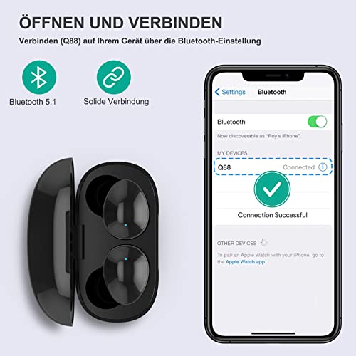 【Völlig kabellose Verbindung und hervorragende Kompatibilität】: Schalten Sie das Gerät ein, öffnen Sie die Ladehülle und verbinden Sie die Kopfhörer schnell in Sekunden mit allen Bluetooth-Geräten. Mit der intuitiven Tastensteuerung können Sie alle Funktionen einfach bedienen. Wie z.B. Anrufsteuerung, Musiksteuerung oder Lautstärke, Titel, oder ein-/ausschalten. Kompatibel mit iOS 7 und Android 4.0, Smartwatches, Tablets, Laptops und Computern.