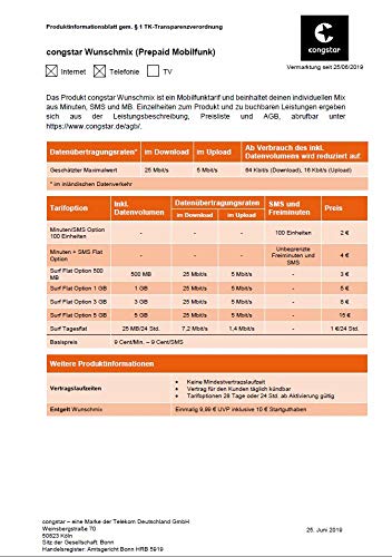 Neue Congstar Karten Prepaid wie ich will Tarif 10 Euro Startguthaben Lieferung innerhalb von einem Werktag. Heute bestellt und morgen bei Ihnen!! Ohne Option 9 Cent pro Min/SMS in alle deutschen Netze. Prepaid wie ich will Tarif Tarifoptionen jeden Monat flexibel zu oder abbuchen keine Vertragliche Bindung! Max.3 Karten pro Person. 10 Euro Startguthaben!!!!! Lagerware Blitzversand sofort nach Kauf NEU.