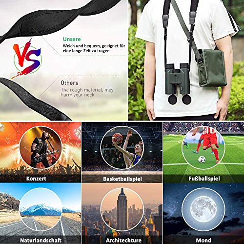 【Komfortabel& Tragbar】 Der breite Nackengurt verfügt über ein fortschrittliches Gewichtsreduzierungssystem, mit dem sich Ferngläser 50% leichter und 100% komfortabler anfühlen. Und es ist auch bequem mit der Tasche zu nehmen.