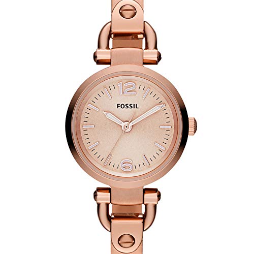 FOSSIL Damen Uhr – rundes Edelstahlgehäuse (Durchmesser 26 mm), glänzend roségold – wasserdicht bis 5 ATM