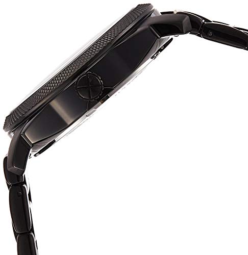 FOSSIL Herren Uhr – schwarzes rundes Edelstahlgehäuse (Durchmesser 42 mm), glänzend und gebürstet – wasserdicht bis 5 ATM – gerändelte Edelstahl-Lünette