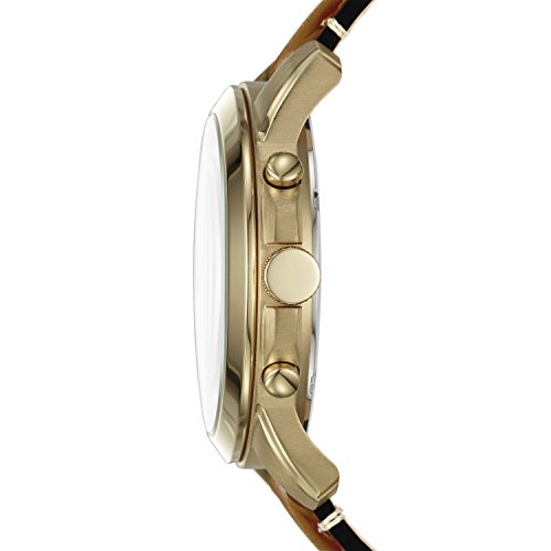 FOSSIL Herren Uhr – rundes Edelstahlgehäuse (Durchmesser 44 mm), glänzend und gebürstet gold – wasserdicht bis 5 ATM – goldene Lünette mit blauer Aluminiumeinlage