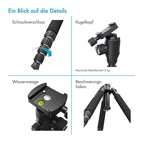 EINFACHE ANWENDUNG: Dank der Aluminium Schraubverschlüsse können alle 4 Stativbeine gleichzeitig herausgezogen und individuell eingestellt werden