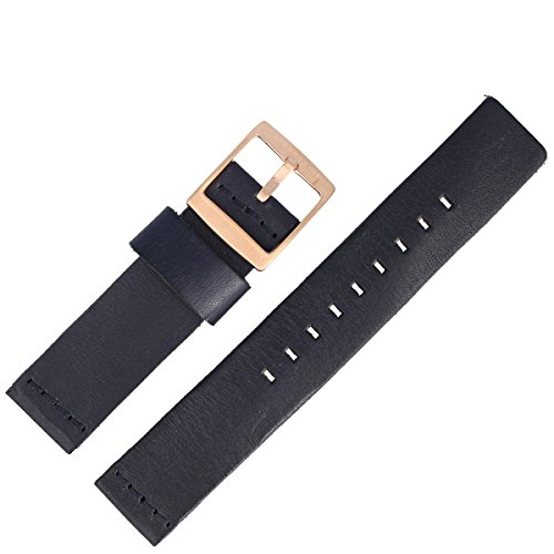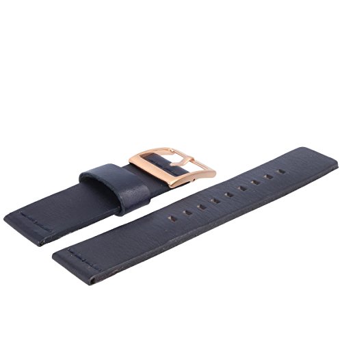 DESIGN – Ersatzarmband aus Leder in der Farbe Blau | Rosegoldfarbene Dornschließe | geringe Farbabweichungen können aufgrund der Eigenschaften des Uhrbandes oder wegen der Darstellung am Monitor auftreten