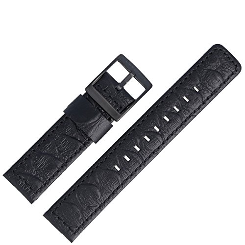 DESIGN – Ersatzarmband aus Leder in der Farbe Schwarz | Schwarzfarbene Dornschließe | geringe Farbabweichungen können aufgrund der Eigenschaften des Uhrbandes oder wegen der Darstellung am Monitor auftreten