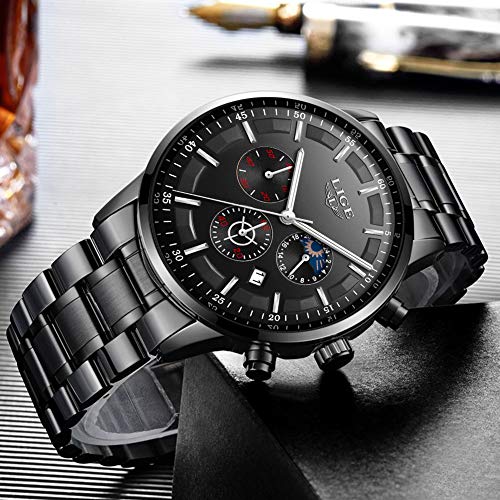 LIGE Herrenuhr Fashion Sport Chronograph Wasserdicht Analog Quarz Edelstahlarmband Beiläufige Uhr