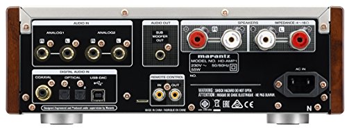 Der neu entwickelte Marantz HD-AMP1 ist ein erstklassiger Kompaktverstärker mit edlem klassischem Erscheinungsbild. Im Inneren des Gehäuses arbeitet ein moderner Schaltverstärker mit 70 W bei 4 Ohm. Mit den beiden Taktgebern und dem diskreten D/A-Wandler sowie HDAM-SA2-Modulen von Marantz klingt Standard-aufgelöstes Material so erstklassig wie High-Resolution-Audio. Der neue Verstärker ist auch mit dem einzigartigen Marantz Musical Digital Filtering (MMDF) ausgestattet. Zwei wählbare Filtercharakteristiken ermöglichen die Anpassung an unterschiedliche Klangpräferenzen und Musikstile. Selbst die winzigsten Details digitaler Audiosignale werden mit größter Sorgfalt verarbeitet. Da Medien heute nicht mehr nur mit einer Auflösung von 44,1 kHz / 16 Bit (CD-Format) ausgeliefert werden, hat Marantz die Digitaleinheit so überarbeitet, dass Signale bis 384 kHz / 32 Bit und DSD 2,8 MHz / 5,6 MHz / 11,2 MHz verarbeitet werden können. Über die optischen und koaxialen digitalen Eingänge lassen sich ein Fernseher oder eine Settopbox anschließen. Und über den USB-B-Anschluss können Sie Musik direkt von Ihrem PC oder Mac streamen. iOS-Geräte können auch über den USB-Anschluss auf der Vorderseite angeschlossen werden. Damit die Qualität auch bei Anschluss an einen PC oder Mac nicht leidet, ist der USB-B-Eingang mit einer vergrößerten Abschirmung umgeben, die verhindert, dass vom Computer erzeugtes Hochfrequenzrauschen in den HD-AMP1 eindringt. Auf dem stilvollen Bullaugen-Display von Marantz werden Informationen zu Lautstärke, Eingang, Auflösung usw. angezeigt. Die massive Aluminiumfront wird durch eine zweischichtige Bodenplatte und Seitenteile im Retro-Stil ergänzt. Willkommen in der Welt der Hochleistungs-Kompaktsysteme!