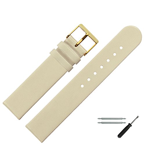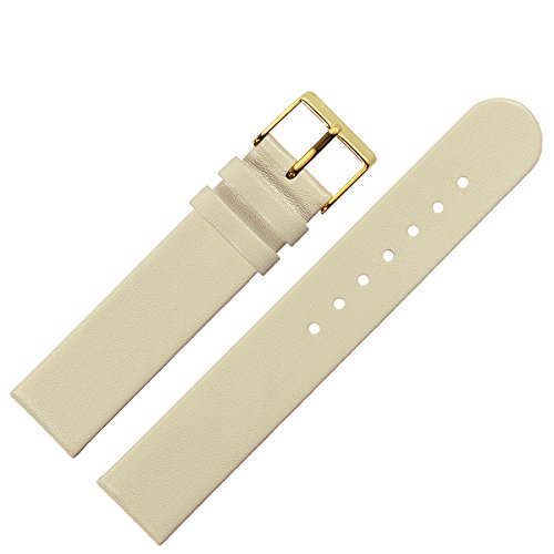 DESIGN – schlichtes Ersatzband aus Rindleder für Uhren in der Farbe Beige | flaches Lederarmband in klassischer Aufmachung | Uhrband mit geradem Bandverlauf und abgerundetem Bandende | passend zu allen modischen Uhren | geringe Farbabweichungen können aufgrund natürlicher Eigenschaften des Lederbandes oder wegen der Darstellung am Monitor auftreten