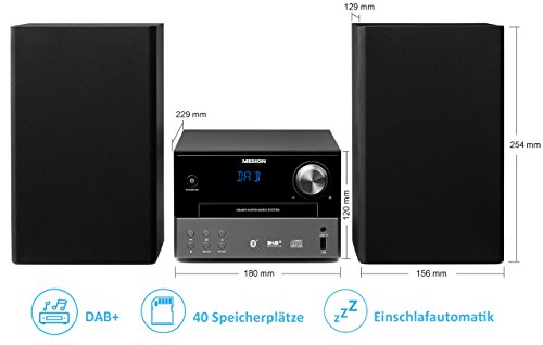 MEDION P64190 Micro Audio System, DAB+, Bluetooth, MP3, UKW/MW, CD, USB, AUX, schwarz