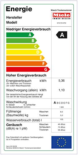 Miele WTZH 730 WPM Waschtrockner Waschmaschine 8 kg / mit Trockner 5 kg / 1072 kWh/Jahr / Energieklasse A / 1600 UpM Automatische Dosierung, lotosweiß