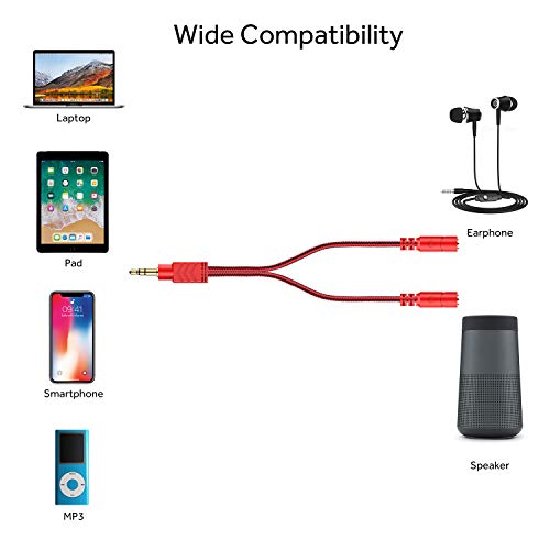 Breite Kompatibilität: MillSO Audio Klinken Splitterkabel ermöglicht den Anschluss von zwei Stereo-Kopfhörer oder Lautsprecher an derselben Buchse an Tablets, Smartphones, MP3-Player und tragbarem Kassetten- oder CD-Spieler.