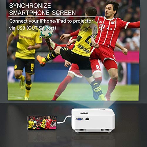 SMARTPHONE BILDSCHIRM SYNCHRONISIEREN — Sie können den TOPVISION Film projektor über ein USB Kabel direkt an ein Smartphone oder einen Laptop anschließen, ohne einen HDMI-Adapter oder eine WiFi Umgebung. Kompatibel mit Amazon Fire TV-Stick / Smartphones / Tablets / TV / Laptop / USB Sticks / TF Karten (max. 32 GB) / DVD Playern. Projektor mit Spiegelbildschirm unterstützt aus urheberrechtlichen Gründen keine abgespielten Videos (Netflix, Amazon Prime Video und Hulu)