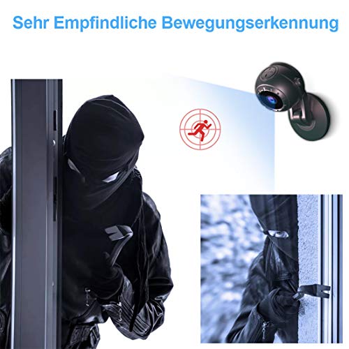 ◆1080P Full HD Auflösung: Die mini-Kamera verfügt über eine professionelle optische Glaslinse. Das Bild ist hell und klar, eine echte Full HD 1080P Kamera, sodass Sie keine großartigen Aufnahmen verpassen. Verbesserte Nachtsichtfunktion mit 8er LED Leuchten. Man kann Videos und Fotos klar aufnehmen auch bei schlechtem Licht. (Die Nachtsicht-Licht leuchtet nicht im Einsatz)