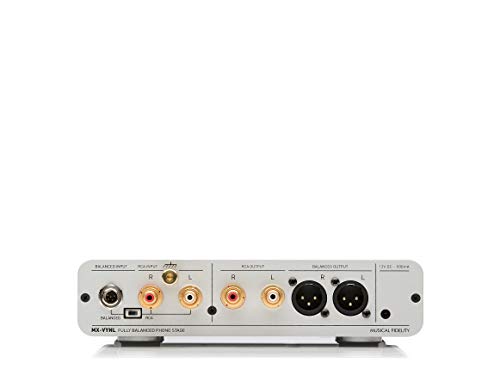 Output4 Volts RMS single ended from RCA sockets 8 Volts RMS balanced from XLR sockets PerformanceFrequency response: RIAA +-0.1dB IEC +-0.1dB MMChannel separation: < -86dB SNR A-wtd: < -101dB THD: < 0.007% XLR input: 5mV / 2.5mV selectable 70mV max (23dB headroom) MCChannel separation: < -83dB SNR A-wtd: < -98dB THD: < 0.01% XLR input: 0.8mV / 0.4mV selectable, 12mV max (24dB headroom) InputsBalanced Mini-XLR, RCA 1 pair RCA sockets OutputsBalanced XLR male sockets EIA Standard RS-297-A, RCA 1 pair RCA sockets PowerConnector: 1.3mm pin DC power jack Outboard power supply: 12V/500mA DC Mains voltages 100-240VAC 50-60Hz universal worldwide supply Consumption < 8 watts Weight (unpacked / packed): 1.9Kg / 2.4 Kg Dimensions W H D220 mm, 53 mm, 215 mm Included accessoriesMains adaptor, Manual [amz_corss_sell asin="B015YOJ0CA"]