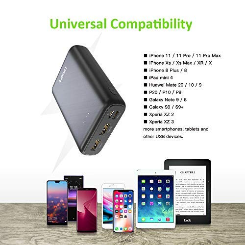 Laden Sie 3 Geräte gleichzeitig auf. Drei USB-Ports (1x USB-C, 2x USB-A) um die Kompatibilität mit jedem Gerät zu gewährleisten, das Sie aufladen möchten. Kompatibel mit den meisten iOS- und Android-Handys, einschließlich iPhone X/8/8Plus, iPad/iPad Pro/iPad mini, Samsung Galaxy S9/Note 8, Sony Xperia Serie, Huawei Mate 10/Mate 9/P10/P9 sowie weiteren Smartphones und Tablets.