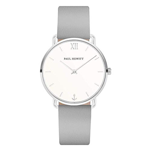 PAUL HEWITT Armbanduhr Damen Miss Ocean White Sand – Damenuhr (Silber), Lederarmband/Edelstahlarmband, weißes Ziffernblatt