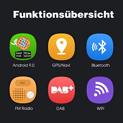 ☀️ Das neueste Betriebssystem: Android 9.0 Pie, Arbeitsspeicher (RAM): 4GB, Interner Speicher (ROM): 32GB, mehr Speicher für Apps-Installtion, Hauptprozessor(CPU): Octa Core Prozessor, Bildschirmauflösung: 1024×600, Ausgangsleistung: max. 4x50W, Eingebauter Marken-Radio-IC: NXP TEF6686 für besseren Radioempfang