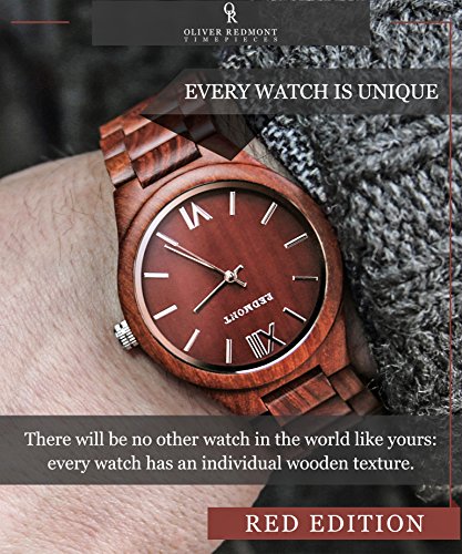 REDMONT Herrenuhr mit Holzarmband Analog Quarz Classic Collection Red Edition