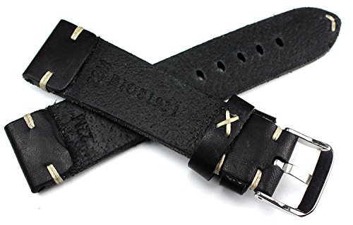 RIOS 1931 22mm Herren Leder Deutsch Uhrenarmband Vintage Pilot schwarz
