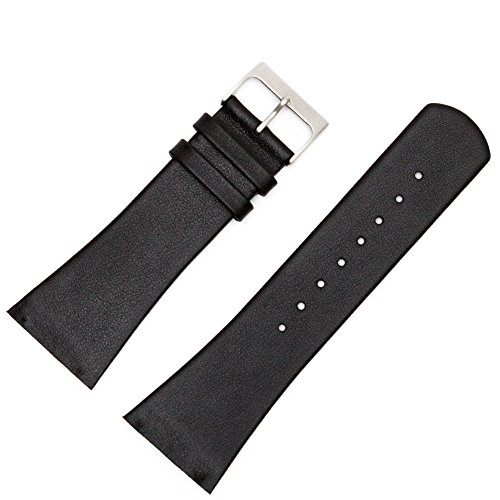 DESIGN – Ersatzarmband aus Leder in der Farbe Schwarz mit rauher Bandoberfläche | klassisch silberfarbene Dornschließe | geringe Farbabweichungen können aufgrund der Eigenschaften des Materials oder wegen der Darstellung am Monitor auftreten