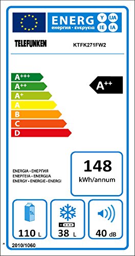 Energieverbrauch 148 kWh/Jahr – Energieeffizienzklasse A++ – Klimaklasse N (16°C – 32°C) – Luftschallemission 40 dB(A) – Gefriervermögen 2 kg/24h