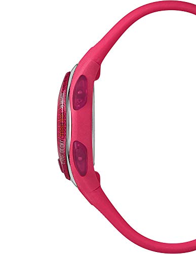 Gehäusedurchmesser: 35 mm, Gehäuse Höhe: 11 mm, Gehäusefarbe: Rosa und Zifferblattfarbe: LCD