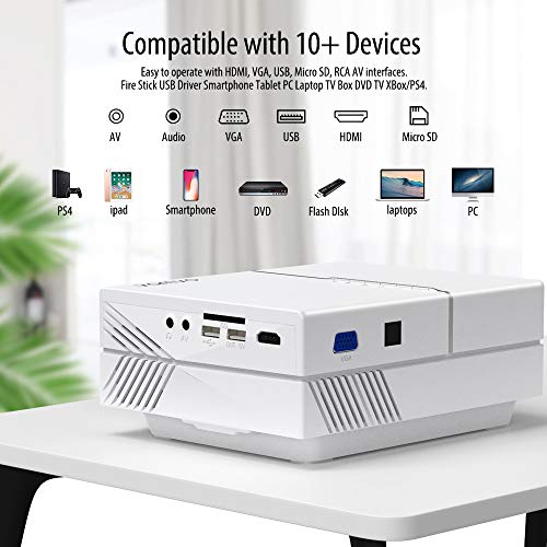 Multimedia-Beamer: Der Vamvo L4500 Videoprojektor bietet mehrere Anschlüsse, darunter HDMI-, USB-, Audio- und AV-Schnittstellen. Du kannst es ganz einfach mit deinem Handy, PS3, PS4, X-Box ONE oder Wii verbinden, um Videos, Fernsehserien, Fotos, Spiele usw. wiederzugeben.