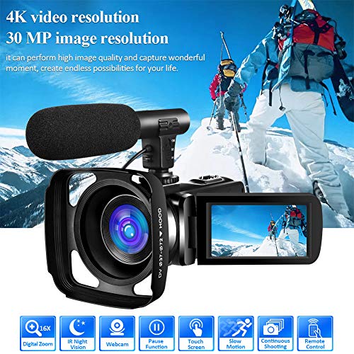 4K Camcorder Videokamera WiFi Vlogging Kamera Camcorder mit Mikrofon Full HD 1080P 30FPS 3″HD Touchscreen Digitale Kamera für YouTube mit IR-Nachtsicht und Fernbedienung