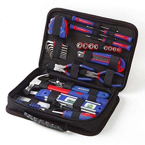🔨 [All-in-One Design]: WORKPRO 100-teiliges Basiswerkzeug Set inklusive Hammer, Wasserwaage, Maßband, Universalmesser, Zange, Schraubendreher, Schraubenschlüssel, Kabelbinder u.v.m.