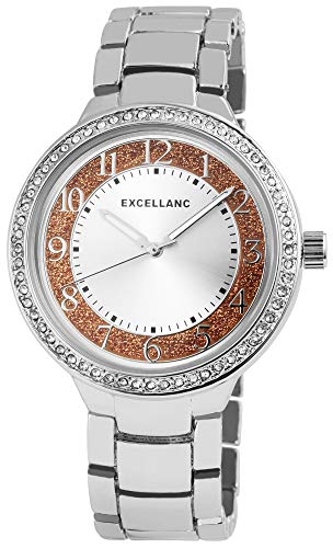 Excellanc Damenuhr Silber Braun Strass Analog Metall Quarz Armbanduhr