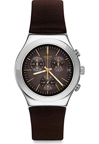 Swatch Unisex Erwachsene Analog Quarz Uhr mit Leder Armband YCS600