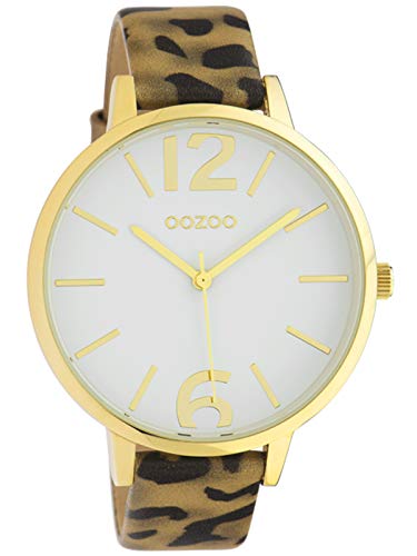 Oozoo Damenuhr mit Leopard Look Lederband Animal Print Colors of Africa 43 MM