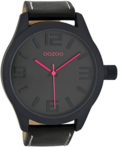 Oozoo Damenuhr mit Lederband 47 MM Schwarz/Schwarz/Pink C1068
